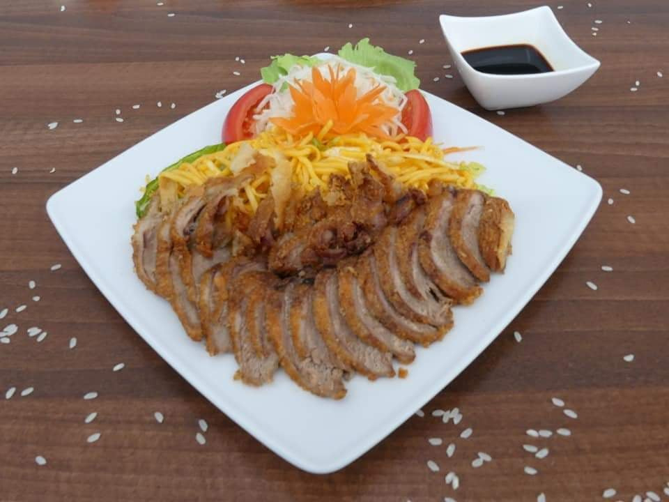 450g kačacie mäso, vietnamské korenie, múka, ryža, šalát
